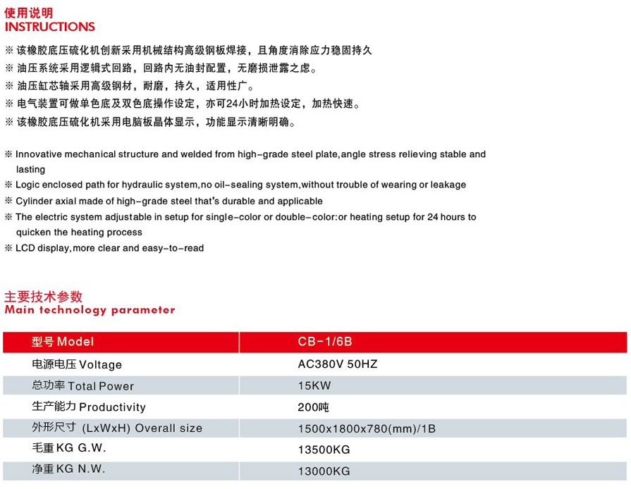 產(chǎn)品名稱:CB-1/6B 橡膠壓底硫化機