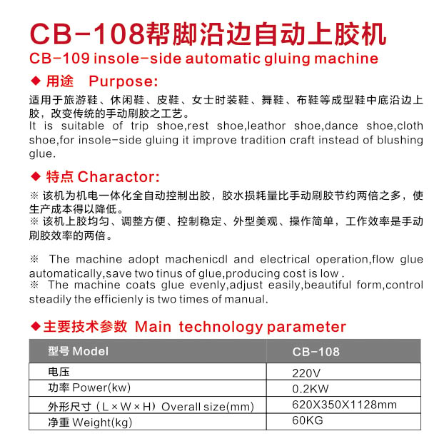 產品名稱:CB-108 幫腳沿邊自動上膠機